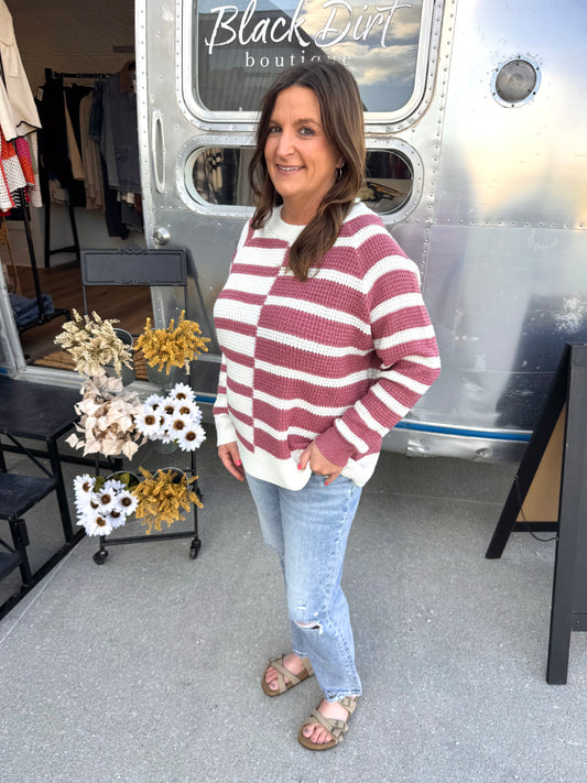 Rose Stripe Block Sweater