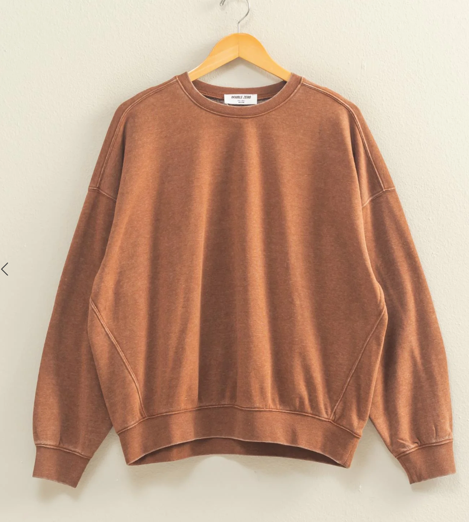 This cozy sweatshirt features a relaxed fit, crew neck, and long sleeves for comfortable wear. Cinched cuffs and hem create a flattering shape. Perfect paired with matching drawstring pants for an easy, laid-back look.